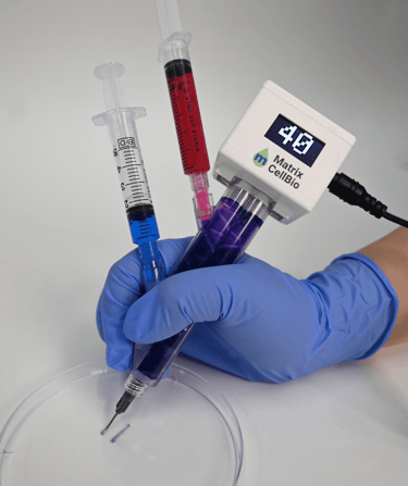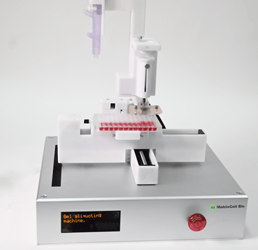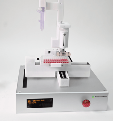 Biogel fabrications with standard processing devices: Transform your traditional gel handling process with our advanced devices, such as biogel digital mixer and high throughput aliquoter, (hand-held) bioprinters, and bioreactor.