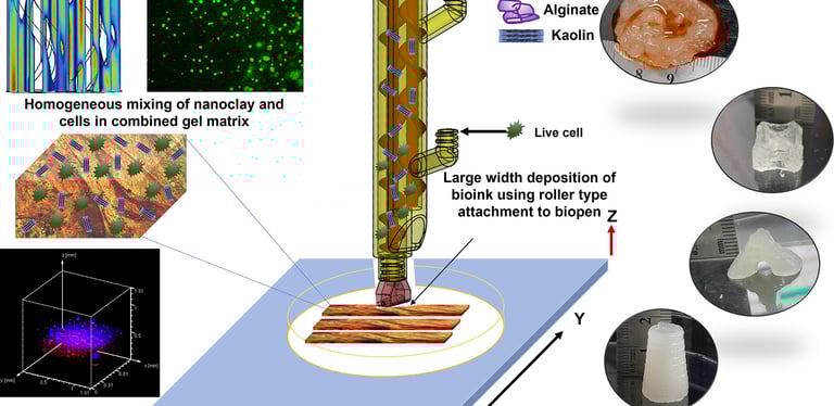 3D bioprinting of complex tissue scaffolds with in situ homogeneously mixed alginate-chitosan-kaolin bioink using advanced portable biopen, Bhattacharyya, HW Ham, Insup Noh, Carbohydrate Polymers , Vol 317, 2023, 121046, Pubmed- doi: 10.1016/j.carbpol.2023.121046.