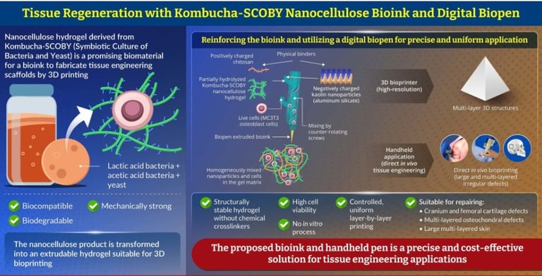 Tissue Regeneration with Kombucha-SCOBY Nanocellulose Bioink and Digital Bioopen.