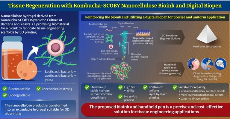 Tissue Regeneration with Kombucha-SCOBY Nanocellulose Bioink and Digital Bioopen.