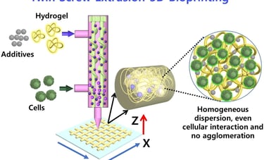 Bioink homogeneity control during 3D bioprinting of multicomponent micro/nanocomposite hydrogel for even tissue regeneration using novel twin screw extrusion system, Chem Eng J , Vol 415, 2021, 128971, Bioink homogeneity control during 3D bioprinting of multicomponent micro/nanocomposite hydrogel for even tissue regeneration using novel twin screw extrusion system - ScienceDirect.
