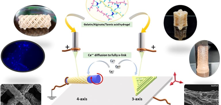 Gelatin-alginate hydrogel for near-field electrospinning-assisted 3D and 4-axis bioprinting, Carbohydrate Polymers J, 2025.