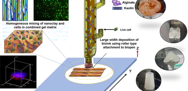 3D bioprinting of complex tissue scaffolds with in situ homogeneously mixed alginate-chitosan-kaolin bioink using advanced portable biopen, Bhattacharyya, HW Ham, Insup Noh, Carbohydrate Polymers , Vol 317, 2023, 121046, Pubmed- doi: 10.1016/j.carbpol.2023.121046.