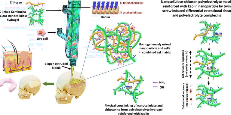 Simultaneous processing of both handheld biomixing and biowriting of kombucha-cultured pre-crosslinked nanocellulose bioink for regeneration of irregular and multi-layered tissue defects. Int J Biol Macromol , 2024 Dec;282(Pt 3):136966. https://doi.org/10.1016/j.ijbiomac.2024.136966.